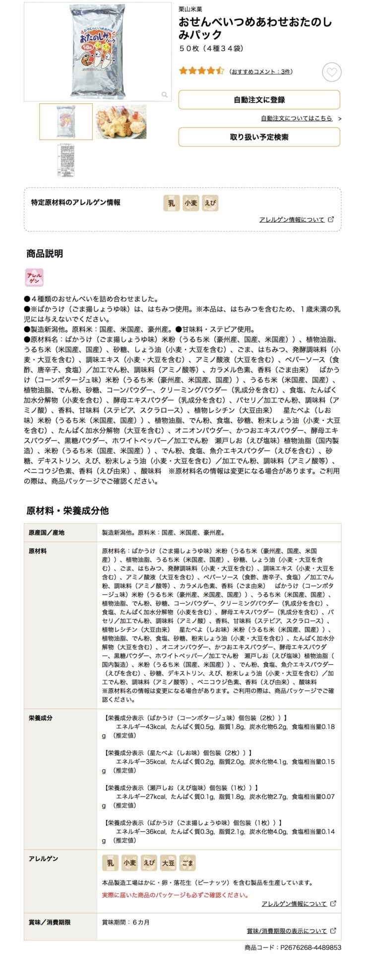 | せんべい詰め合わせ しみチョコ | ベルギーチョコロール ソルティバター | トマトプリッツ パックンチョ | バウムクーヘン ポテトチョコ | |