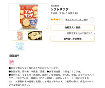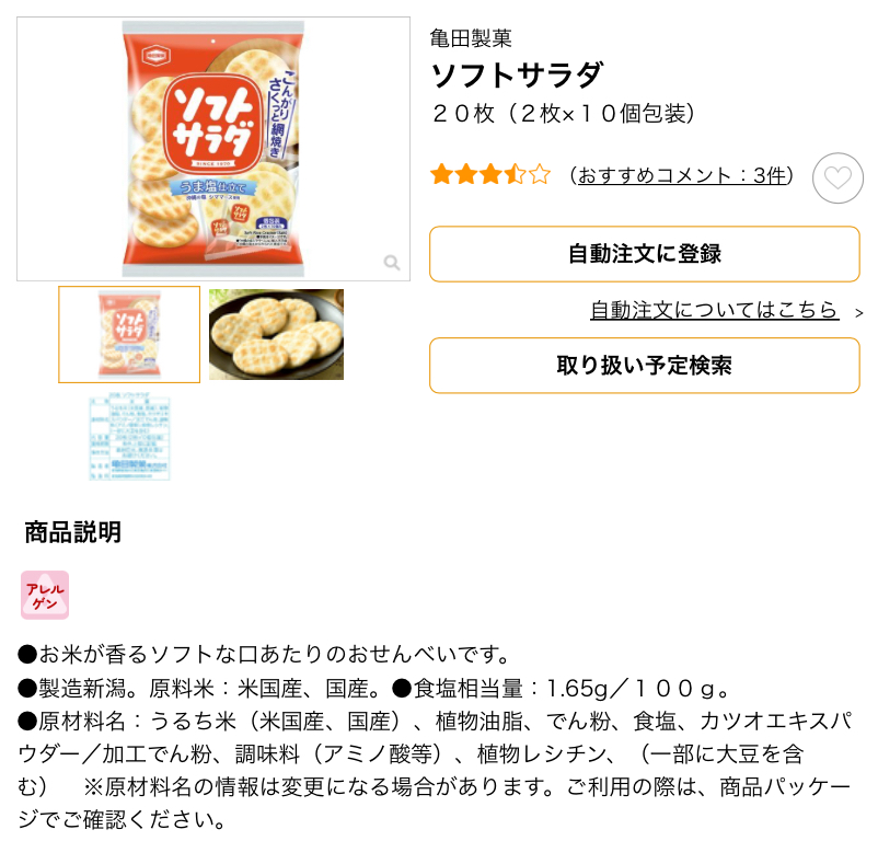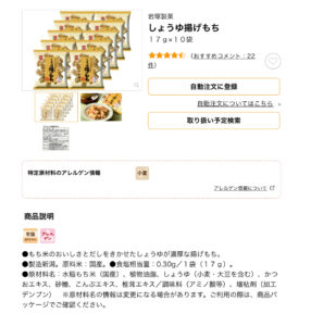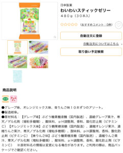 グレープゼリー または アップルゼリー しょうゆあげもち または ソフトサラダ |