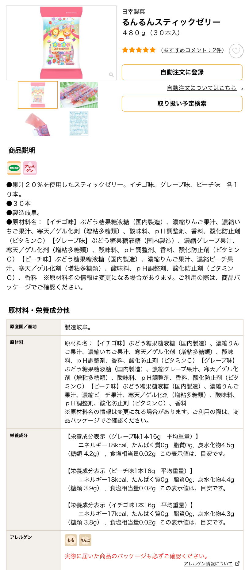 アレルギーチェックページ(本ページ)更新 |
