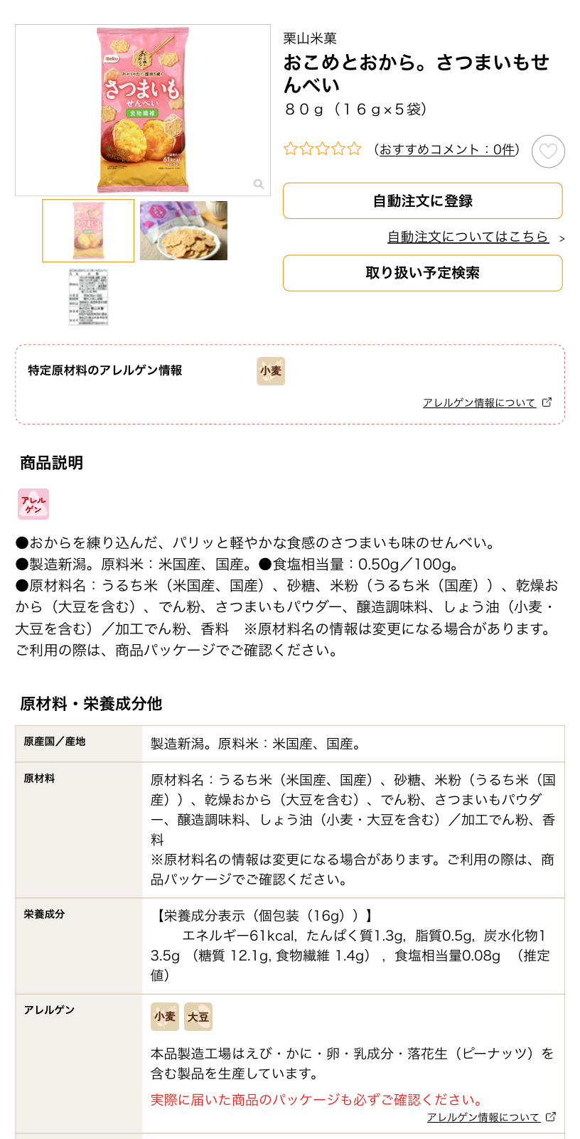 グレープゼリーまたはアップルゼリーおこめとおからさつまいもせんべい |